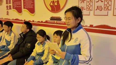 九年级(18)班的庄一凡在发言中铿锵表态:“作为一名共青团员,要接好时代的接力棒,以奋斗为笔,以担当为墨,在青春的赛道上奋力奔跑,书写无愧于时代的答卷!”